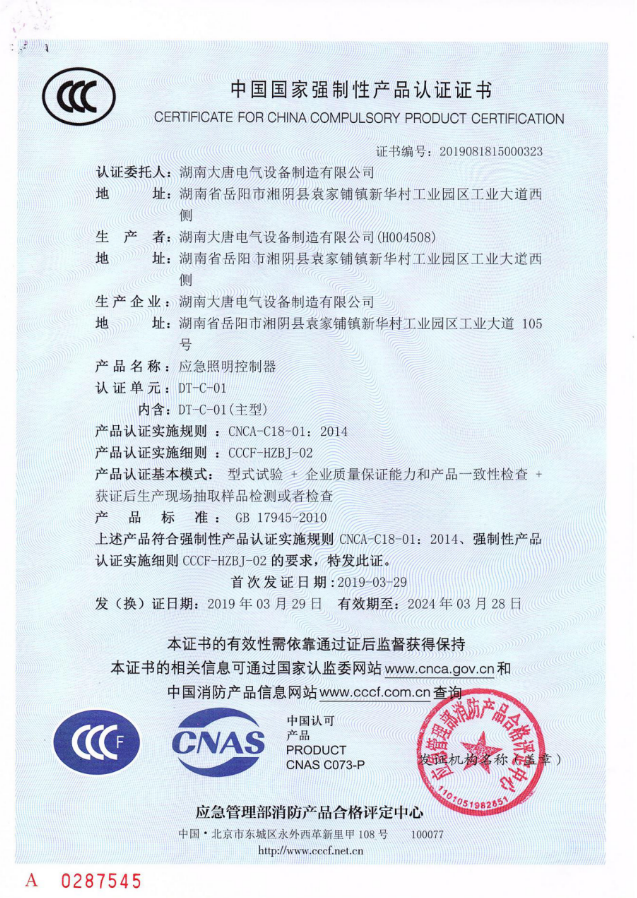以上幾點就是湖南大唐電氣為大家總結的在選擇智能消防應急照明系統廠家時需要注意的內容,僅供參考。若有智能消防應急照明系統采購需求可聯系湖南大唐電氣,公司擁有智能應急照明疏散系統等5項計算機軟件著作權,產品配置靈活,證書齊全,產品品質值得信賴!